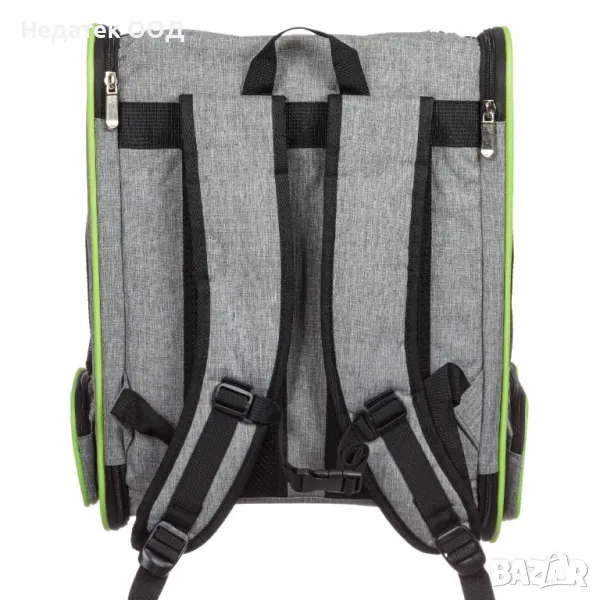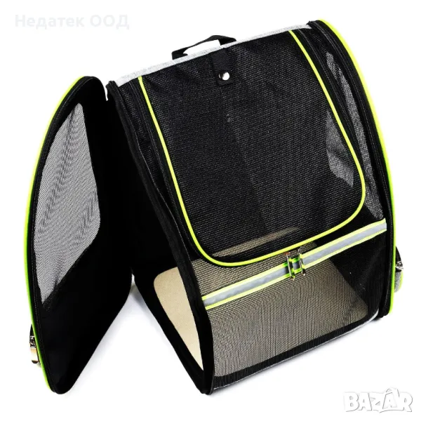 Раница за лесно транспортиране на вашия домашен любимец. С мрежа, която позволява на въздуха да циркулира и вашия домашен любимец да гледа навън, странични джобове за съхранение на всички аксесоари, от които се нуждаете, лек, издръжлив с лесно съхранение. Има отвор отстрани и отгоре с пластмасови ципове и светлоотразителни повърхности. Подходящо е за малки или средни животни, има регулируема закопчалка на талията и гърдите за допълнителна опора и комфорт и има вграден колан от вътрешната страна, който се закопчава около нашийника на животното.