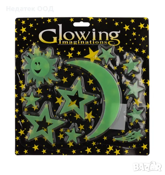 Флуоресцентни стикери за стена с дизайн на луна, слънце и звезди. Поставете ги в източник на светлина за минута, за да запазите блясъка. Залепете ги с двустранната лента, включена в опаковката, към стената или тавана, за да създадете невероятен блясък. Те са изработени от пластмаса и лесно се отстраняват за повторна употреба и ви позволяват незабавно да промените пейзажа. Можете да ги залепите върху предмети или прозорци.