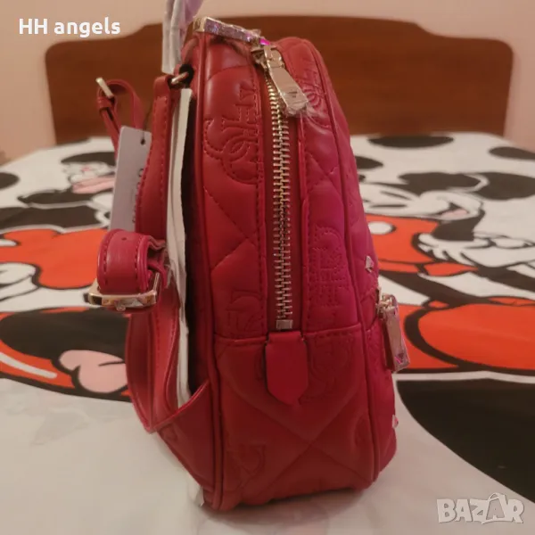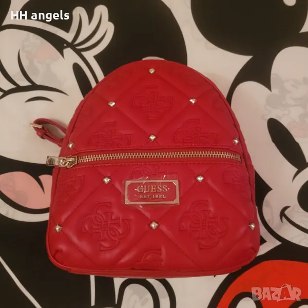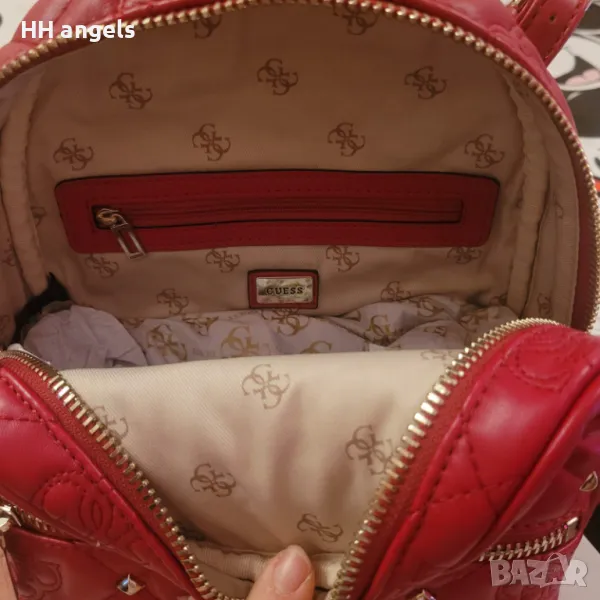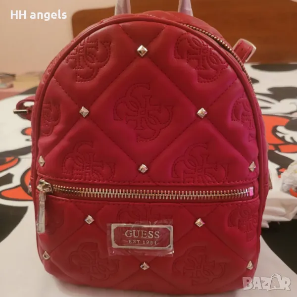 Guess Shanina нова раница с етикети 169лв.Guess чисто нова раница с етикет,модел:Shanina,еко кожа с декоративни шевове и капси,води се цвят червено червило:) и е с размер 27 см височина,25 см ширина и 13 см дъно.Уникално моделче.