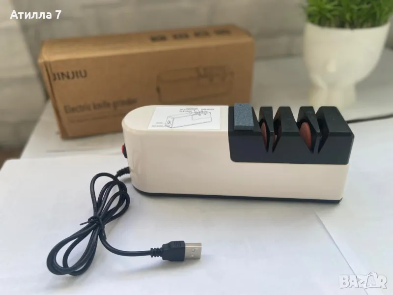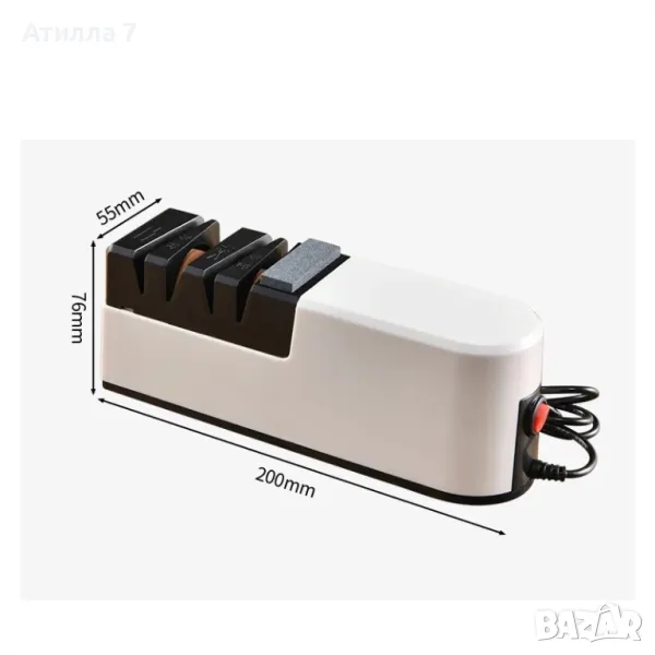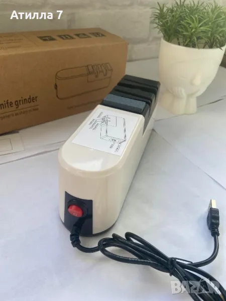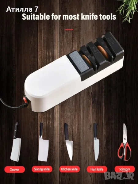 Със тази електрическа машинка за заточване на ножове можете да заточите ножовете или ножиците си само за няколко секунди. Точилката може бързо да заточи различни видове ножове за 15 секунди което го прави значително по-удобен и бърз за използване пред точилния камък или ръчната точилка.