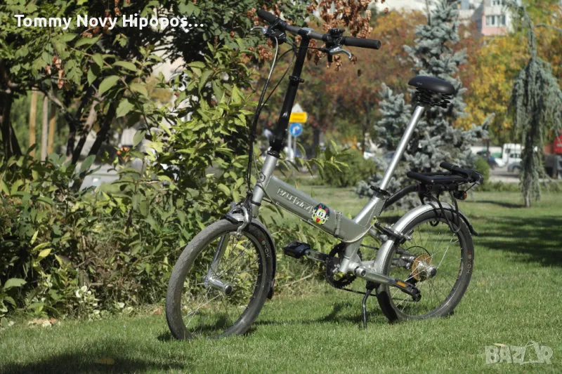 Giant. Сменил съм му преди време венеците отзад и отпред така че не са износени,нови скорости, оптегач и палцова команда нови жила с бронйи също така и нови калници . итересното за модела е че е с половин вилка и отпред и отзад както и с капсоловани лагери в двете главини и в средното движение . капсолованите лагери са мн по здрави по трудно се замарсяват и имат по дълаг живот както и са мн по лесни за подмяна .велосипеда си има оригинален багажник който може и да се сваля . Рамката се згъва на две а кормилото се згъва и е телескопично за да може да го нагласите според вашата височина . Страхотен велосипед грижих се много за него но си купихел ектрически и този ми става излишен .