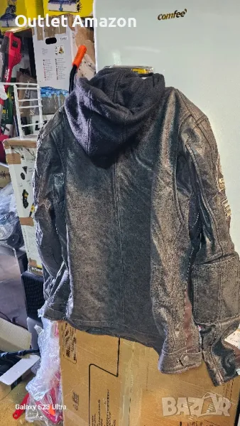 Urban Leather '58 GENTS' | Мъжко кожено мотоциклетно яке с одобрена от CE защита на гърба, раменете и лактитеМатериален състав100% кожаСтрана на произходПакистанОтносно този артикулВИСОКО КАЧЕСТВО НА ИЗРАБОТКА: Нашите якета са изработени от най-висококачествена агнешка кожа и гарантират защита и комфорт при всякакви обстоятелства. Всяко яке, ръчно изработено от нашите майстори, е уникално и с внимание към всеки детайл.НАПЪЛНО ПРЕМАХВАЩИ СЕ ОДОБРЕНИ ЗАЩИТИ: Безопасността на мотоциклета е от съществено значение! Протекторите за рамене, лакти и гръб в нашето мотоциклетно яке отговарят на стандарта за безопасност CE 2. Искате ли да използвате якето всеки ден, дори когато не сте на мотоциклет? Всички защити са подвижни, за да осигурят максимален комфорт дори когато оставите мотоциклета у дома. Можете също да свалите качулката благодарение на практичен цип.АДЕКВАТНИ ЗА ВСИЧКИ СЕЗОНИ: Нашите якета ви придружават през всеки сезон. Агнешката кожа прави якето топло за зимата, но дебелината е идеална и за пролет/лято, никога няма да се разделяте с нея.2 ПРАКТИЧНИ ВЪТРЕШНИ ДЖОБА: Никога няма достатъчно място за нашите предмети на мотоциклет. Нашето яке има 4 външни и 2 вътрешни джоба, за да съхранявате най-ценните си предмети в абсолютна безопасност и защитени от лошо време.КУПУВАЙТЕ БЕЗ ПРИТЕСНЕНИЯ: Искате да закупите якето, но не сте сигурни за размера? Проверете нашето ръководство за размер сред изображенията на продукта и открийте размера, който ви подхожда най-добре