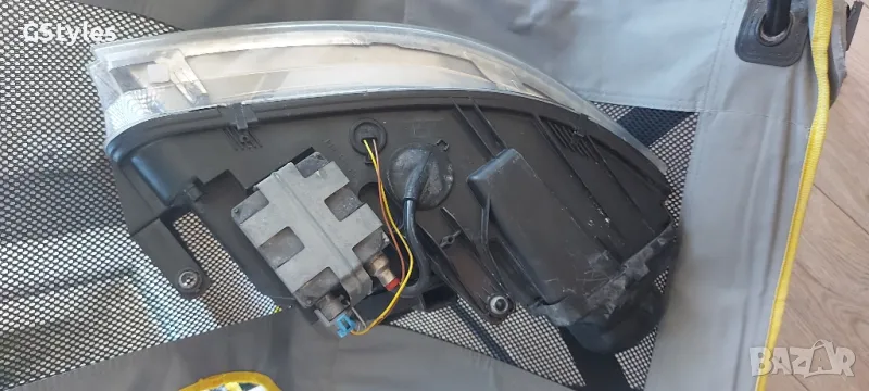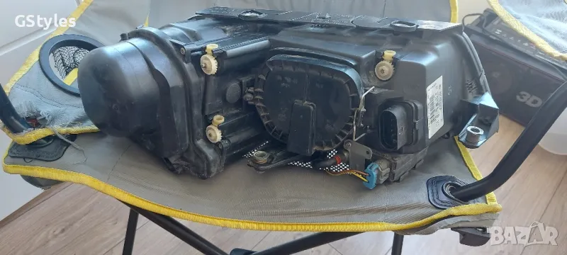 пълен комплект ляв (пред шофьора) ксенонов фар напълно оборудван и перфектно работещ фар. Всички крушки светят, капачките са налични, всички места за закрепване са здрави, инсталация е хубава и най-важното лупата е здрава и свети добре. Единствено като забележка може да отбележа драскотина на стъклото, не знам дали ще излезе на пастиране, но не пречи на фара, освен визуално. Марка Хела! трисекционен фар.