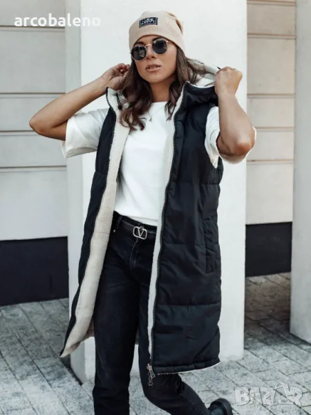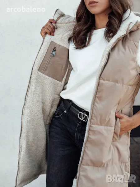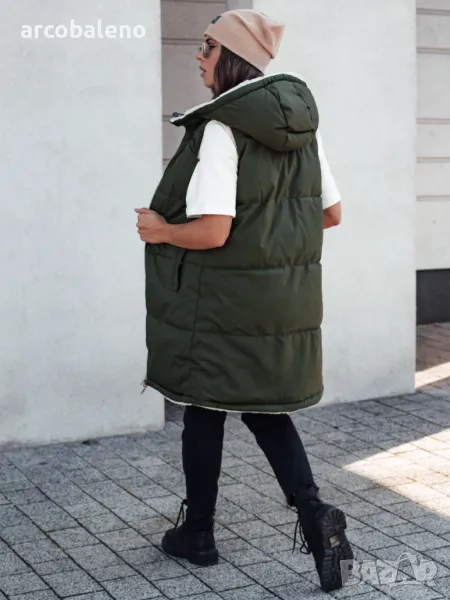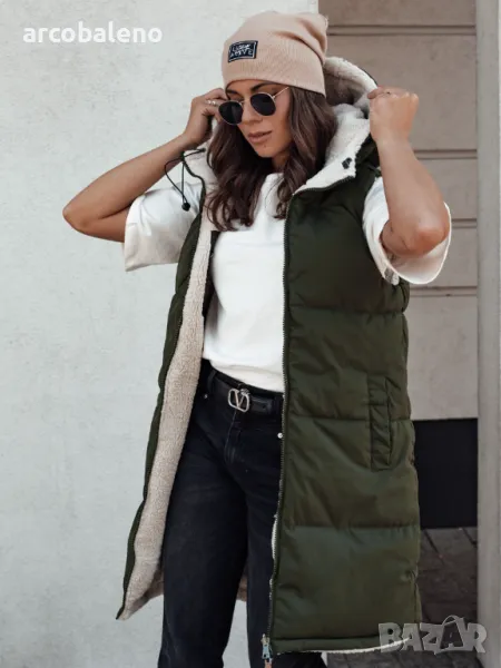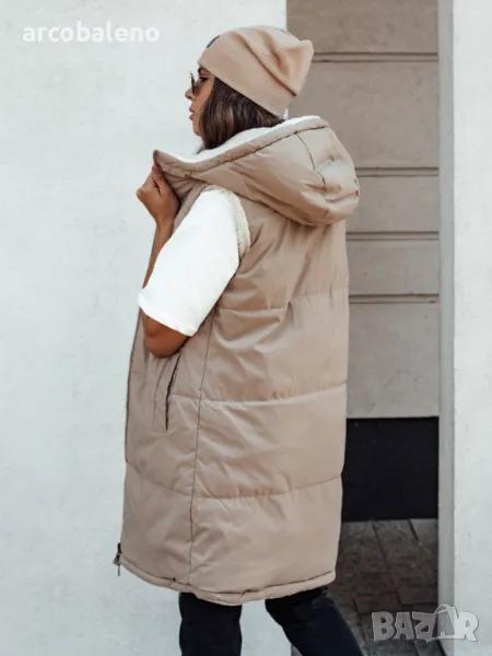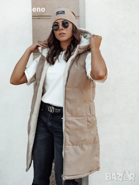 Дълго дамско ватирано яке без ръкави с качулка COSYVIVA, 3цвята