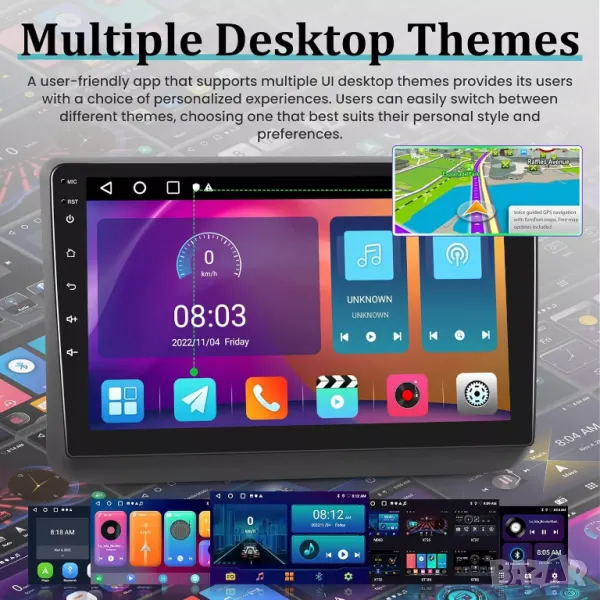 Поддържа всички навигации, съвместими с Android: IGO, WAZE, GOOGLE Maps и други