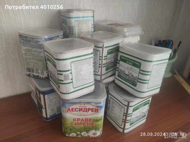 НОВИ, ЕДНОКРАТНО ИЗПОЛЗВАНИ КУТИИ ТЕНЕКИЕНИ ОТ СИРЕНЕ ОТ 1 КГ, ОТ 800 Г. КАКТО И ПЛАСТМАСОВИ КУТИИ ОТ СИРЕНЕ 1 КГ. ТУБИ ОТ ВОДА 5 Л.