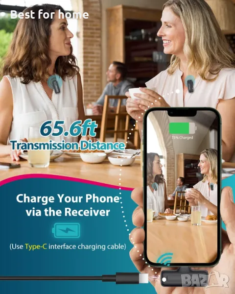 Не е необходимо приложение или Bluetooth. Лесен за използване, просто включете приемника в устройството си и микрофонът ще се сдвои автоматично, след което можете да започнете да записвате или заснемате видеоклипове.