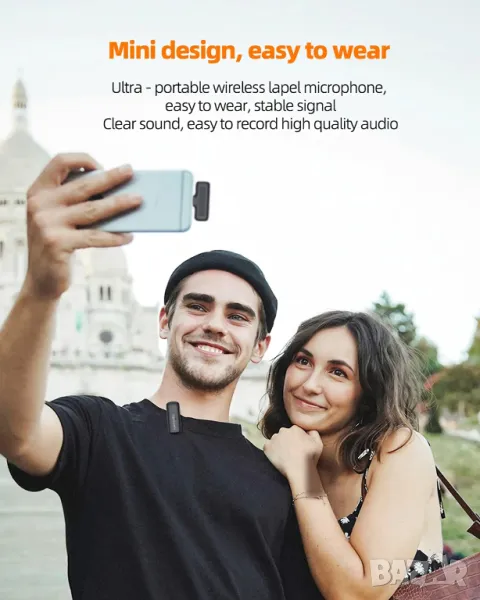 Професионалният безжичен мини микрофон се предлага с 2 предавателя и 1 Lightning Port приемник