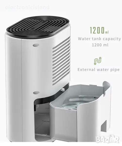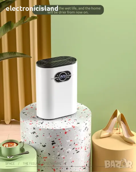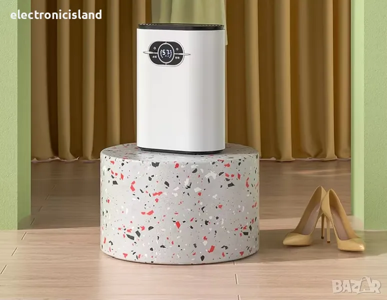 1.2L обезвлажнител е мощен съюзник в битката срещу излишната влага, осигурявайки комфортна и здравословна вътрешна среда. С капацитет, вариращ от 100 до 240 пинти за 24 часа, тази мини сушилня за въздух е идеална за пространства до 100 квадратни метра. Резервоарът му за вода, с капацитет от 1,1 до 2,5 литра, позволява продължителна работа без необходимост от често изпразване. Елегантният дизайн, включващ ясен LED дисплей, не само изглежда модерен, но също така осигурява лесен достъп до цялата необходима информация, включително нива на влажност и състояние на резервоара за вода.