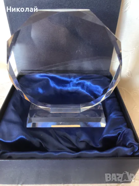 Кристален плакет Октагон, височина 18 см, дебелина на кристала 2 см, в лукс кутия, 2 бр. налични → Обява 47385100