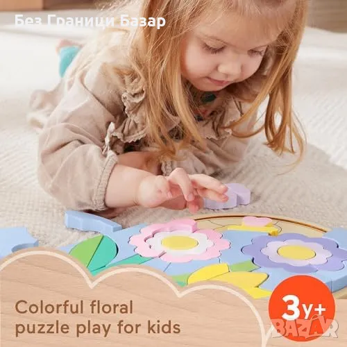 Нов Дървен пъзел с цветя Fisher-Price за деца 3+ години, 37 части играчка