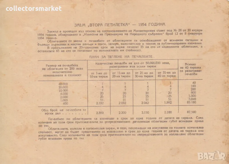 Облигация 20 лева 1954 № 136077 → Обява 47385557