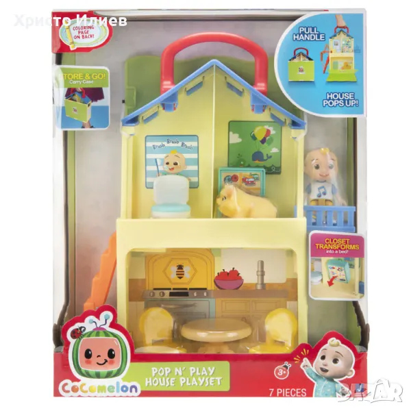 Пренеси забавлението с CoComelon навсякъде с любимите герои - Джей Джей и Джелибийн в трите забавни стаи на трансформиращата се къща Поп енд Плей!