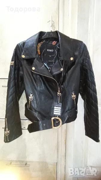 Ново яке с етикет естествена кожа на PINKO. Висок клас . Мека кожа, перфектна изработка . Коланът може да се сваля. Ръкавите са с ватирана подплата . Изпращам с преглед и тест.