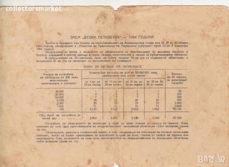 Облигация 40 лева 1954 № 135057 → Обява 47385880