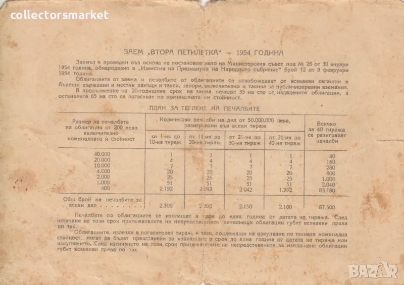 Облигация 40 лева 1954 № 135205 → Обява 47385890