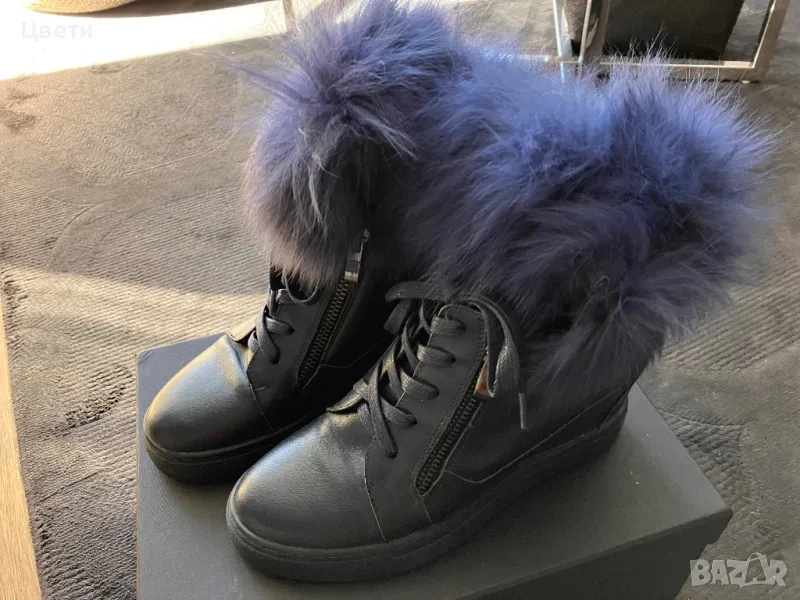 Обувки естествена кожа с пух, тъмно сини, обувани много малко