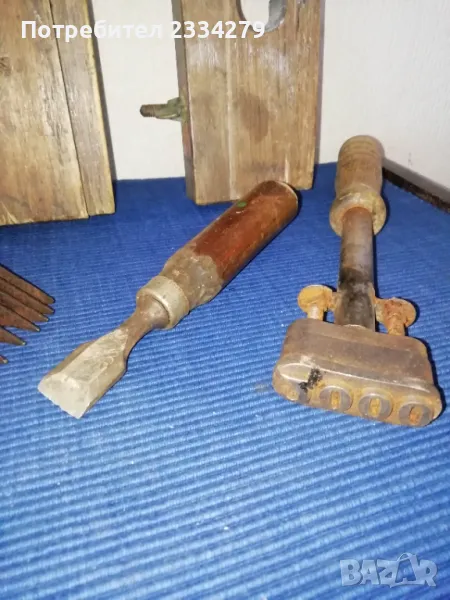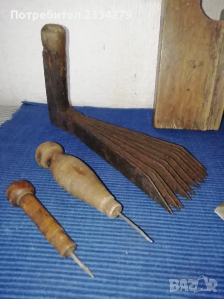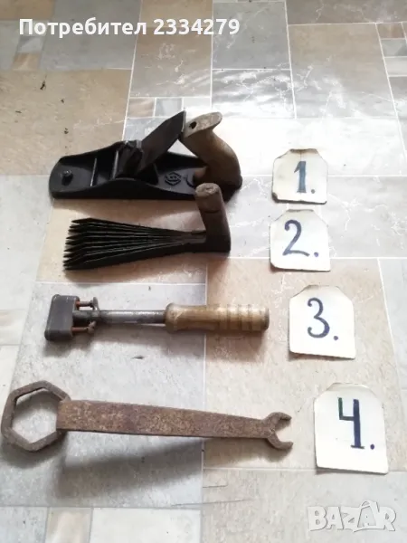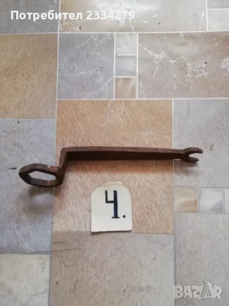 N:2 стар тъкачен уред-гребен използван през възрождението за тъкане на килими и други, ръчно изработен от желязо и дърво, цена 35лв.; N:3 (НЕВАЛИДЕН); N:4 ръчно изкован ключ за каруци,