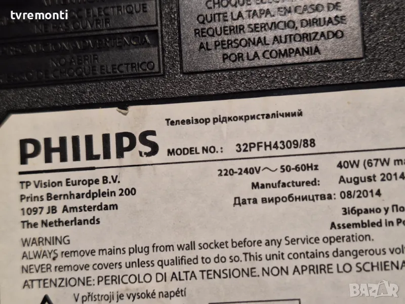 Платка MAIN AV 715G6092-M0H-000-004K for, PHILIPS 32PFH4309/88 for 32inc DISPLAY TPT315B5HVN05 REV:S → Обява 47389009