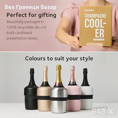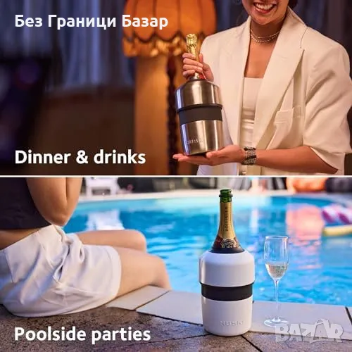 Универсален дизайн – пасва на повечето 750ml бутилки шампанско и пенливо вино.