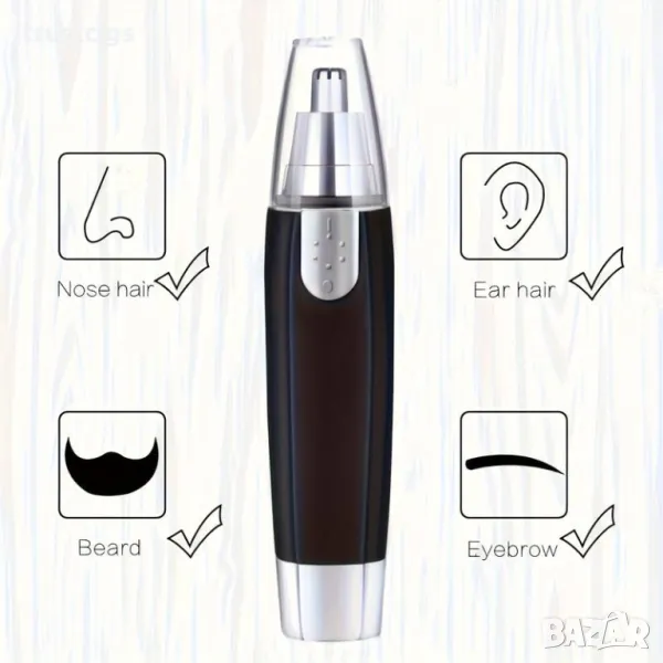 Инструкции за употреба: Просто завъртете устройството и внимателно го поставете в ноздрите или ушите за подрязване. Не вкарвайте устройството твърде дълбоко в ноздрите или ушите, за да избегнете нараняване. Поддръжка: Разглобете пластмасовата рамка на острието, извадете металния държач на острието от рамката, почистете космите/праха по държача на острието, боравете с него правилно и поставете държача на острието обратно на място.