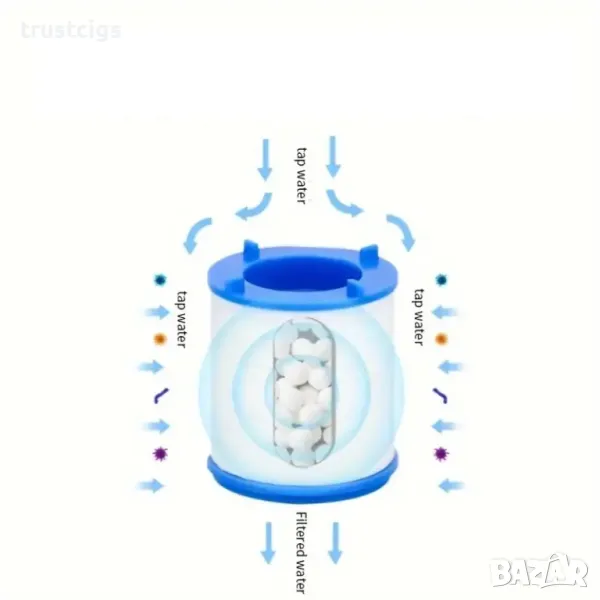 Ефективен: Премахва хлор, ръжда, пясък и други примеси, които влошават вкуса и мириса на водата.