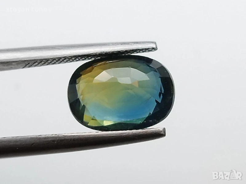 Този сапфир изглежда син, но всъщност е комбинация от жълто и зелено. Изключителен и прелестен скъпоценен камък.