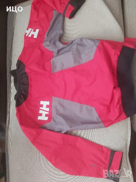 Състояние отлично на детското тънко горнище HELLY HANSEN. Тънка материя снимана и отвътре. Велкро лепенки на китките,кръста и врата. Преден джоб с велкро лепенка. Дължина от рамо до долу 57см. широчина на подмишниците 48см. Размер до 10годишни и до 140см. Цена 35лв.