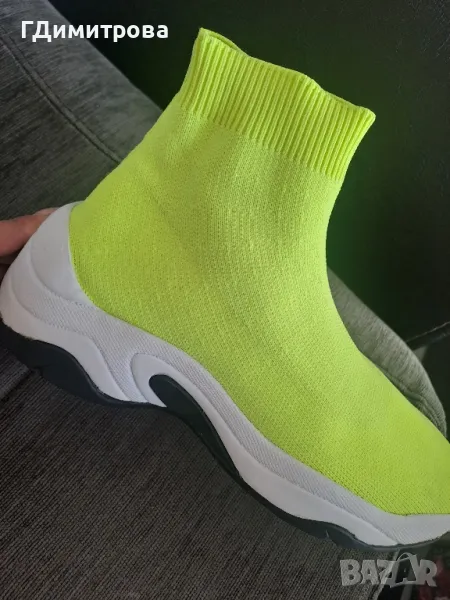 Дамски спортни обувки от еластичен текстил, размерът по етикет е 40, но са умалени, стелката измерена от мен е 25, 5 см.Подходящи за 39, 39 и 1/2 размери.Обувани са веднъж, безупречно състояние.