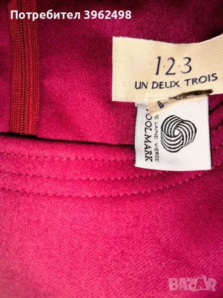 Официална дамска рокля от фин вълнен плат, много мека и удобна. Размер по етикет 42/44. Дължина 94 см, гръдна 94 см. С подплата.