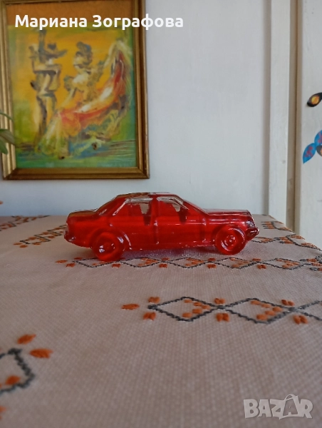 2. Автомобил "Мерцедес" в червено, стъклена отливка 70-80 г.