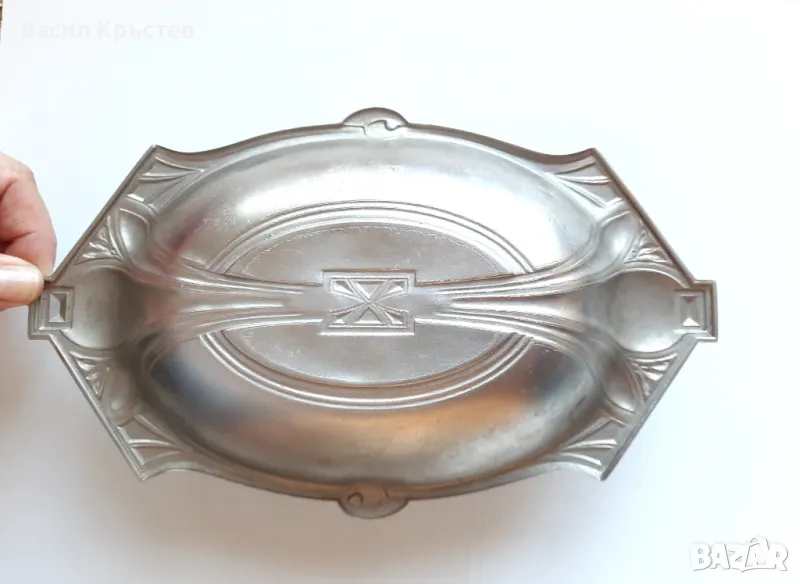1. Посребрена метална бонбониера, съд за поставяне на прибори за хранене, с маркировка WMF.