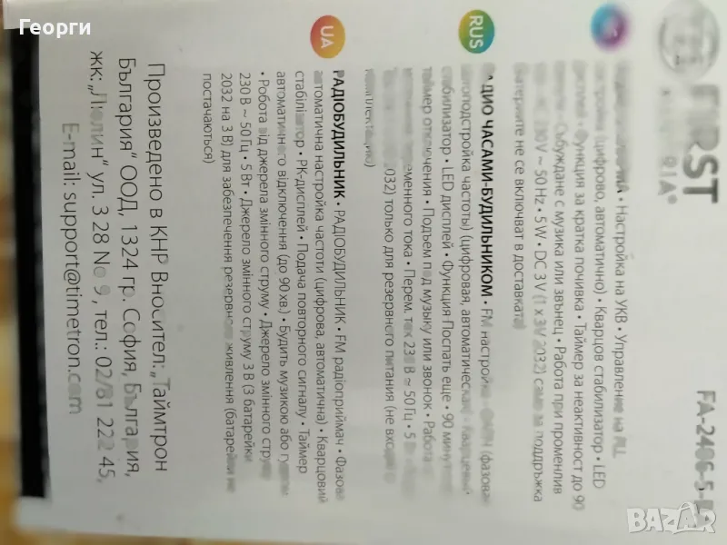 Продавам нов радиочасовник "FIRST"-FA-2406-5-BA, снимка 1 - Радиокасетофони, транзистори - 47394703 Продавам нов радиочасовник "FIRST"-FA-2406-5-BA, снимка 2 - Радиокасетофони, транзистори - 47394703 Продавам нов радиочасовник "FIRST"-FA-2406-5-BA, снимка 3 - Радиокасетофони, транзистори - 47394703 Продавам нов радиочасовник "FIRST"-FA-2406-5-BA, снимка 4 - Радиокасетофони, транзистори - 47394703 1/4