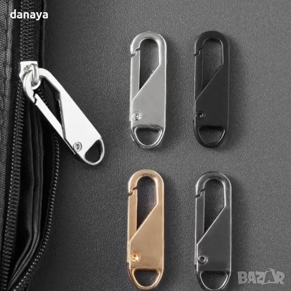 Позволява ви бързо да поправите и замените счупен цип. Благодарение на това умно малко нещо вече не е необходимо да сменяте целия цип на дрехите си или други вещи, които имат цип. Дръжката се поставя на мястото на плъзгача с помощта на малък карабинер.