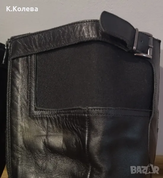 Черни ботуши от мека естествена кожа с цип, в горната част с ластик и катарама за регулиране на ширината по крака. Дължина на стелката 26.5-27см. Обувани са два пъти.