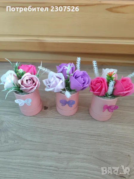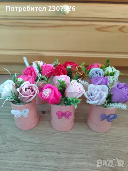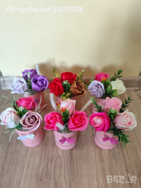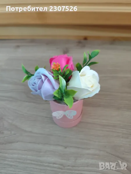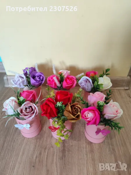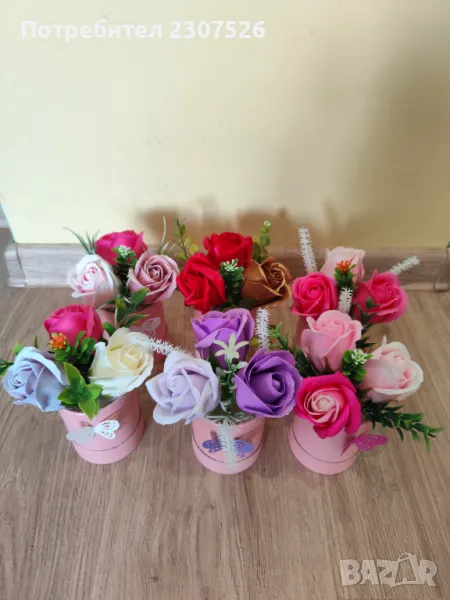 Перлени кутийки аранжирани с пластични сапунени рози