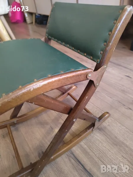Отоманка-столче за крака. Люлеещо се и се регулира височината. Тапицирано с зелена кожа, без забележки.
