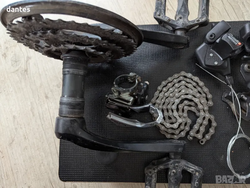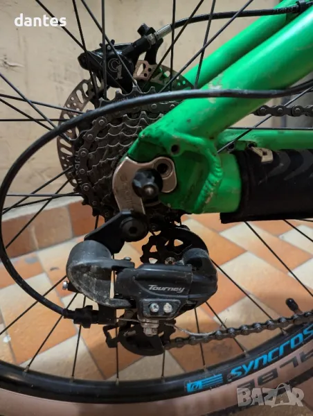 Продавам частите от снимките. Shimano 7 скорости, Syncros главина QR, дерайльор Shimano Tourney, предна 3x и задна 7 скорости команди, верига, кожух за жилото на задните скорости.