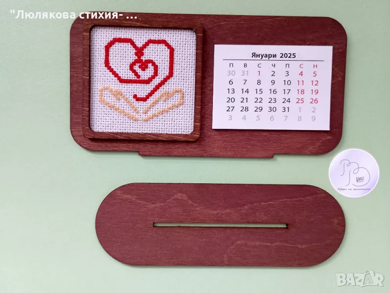 Настолен календар с подходяща ръчна бродерия- авторска идея, схема и изработка- подходяща практична и символична идея за подарък за акушер-гинеколог и/или акушерка.