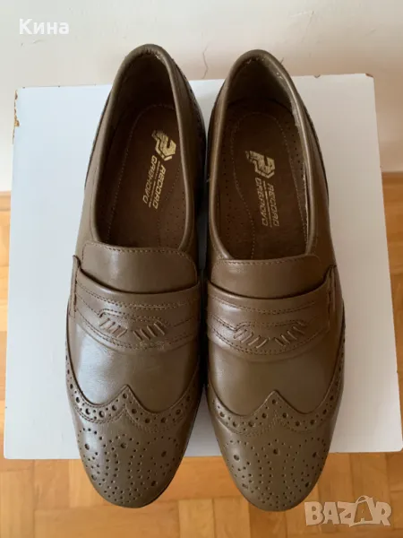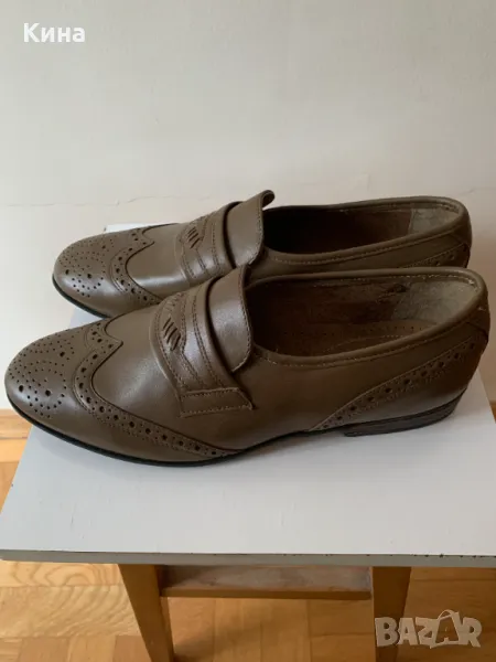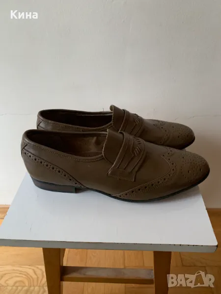 Продавам мъжки елегантни обувки от естествена кожа, 43-ти номер, запазени, без скъсвания и протривания, в отлично състояние, леки и удобни, без връзки с ластици, цвят светло кафяв.