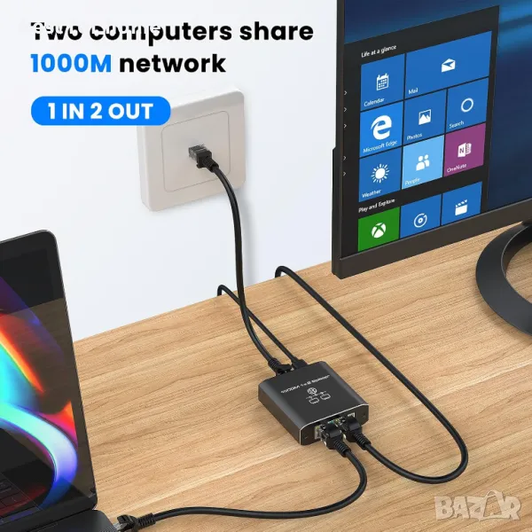 Gigabit Ethernet сплитер 1 към 2 с висока скорост 1000Mbps
