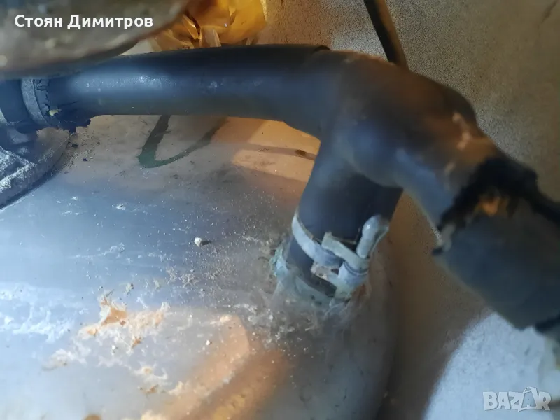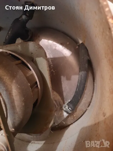 Двигателят работи, гумените съединения за водата са скъсани.