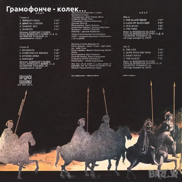 Първата дългосвиреща плоча на група АХАТ е съвместна реализация на Балкантон и ЦК на ДКМС
