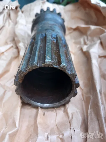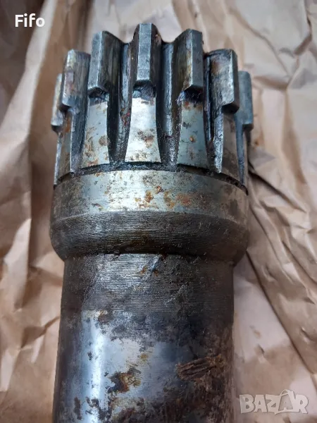 Вала е чисто нов, оригинален руски (ссср). Не е монтиран никога! Вала е с 15 зъба за по-голями обороти на силоотводния вал. Ръжда няма никаква ,това по него е смазка.