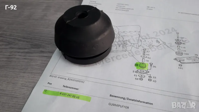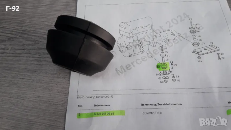 A6312410065**НОВА**MERCEDES-BENZ**W631**MB100D**ТАМПОН ЗА ДВИГАТЕЛЯ**ЛЯВ-ДЕСЕН**