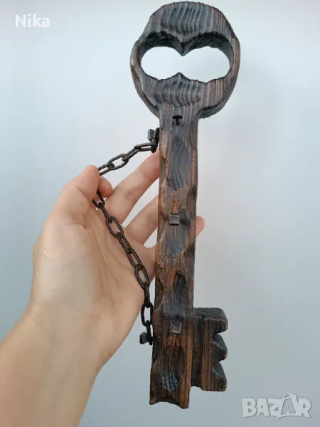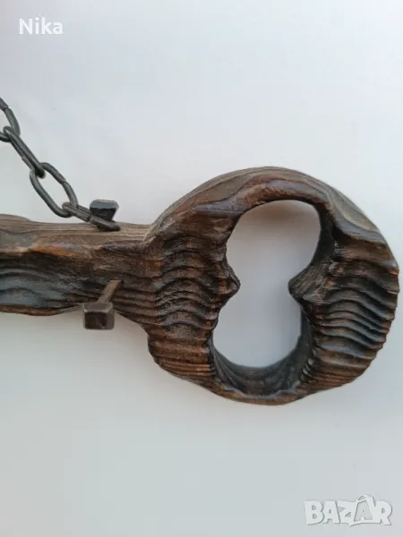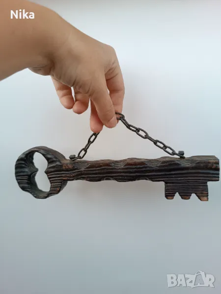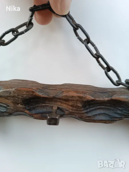 Рустик, дървена закачалка за ключове с метални качки и верига за окачване. Перфектно състояние. Ръчна изработка.