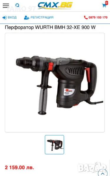 Продавам комбиниран перфоратор на Вюрт в отлично визуално състояние, както се вижда на снимките и работи перфектно. Оригинално немско производство, внос от Франция. Обявената цена е за само машината, както си е на снимките. Пращаме с опция преглед и тест с куриерска фирма еконт може и лично предаване за гр. Шумен. Магазинската цена е: 2 159лв.