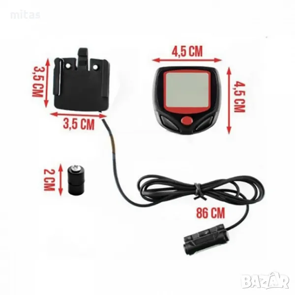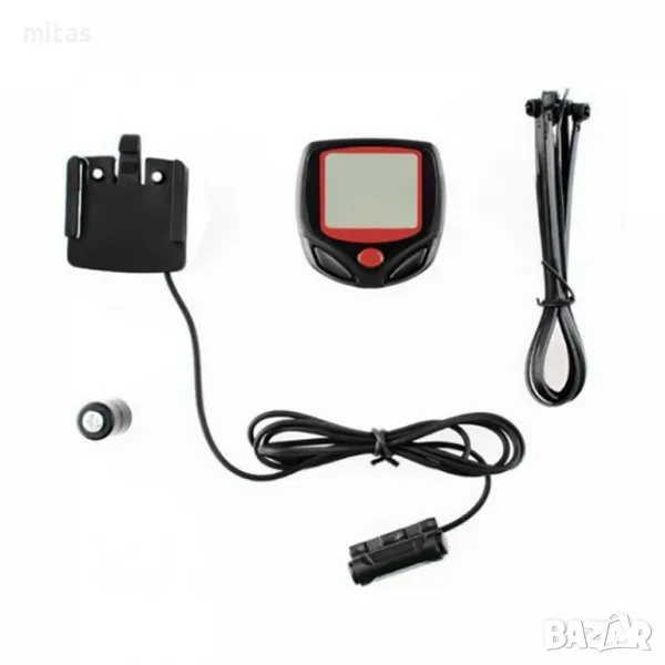 - Устройството е снабдено с датчик, който се закрепва на колелото и срещу него се закрепва магнит на спица от колелото.