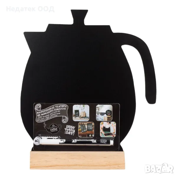 Декоративна черна дъска - многофункционална черна дъска във формата на чайник, подходяща за всички течни тебеширени маркери. Класическата черна дъска е идеален избор за писане на вашите съобщения, повърхността (двустранна) е черна и гладка, а дървената рамка придава специален стил. Можете да го използвате у дома, в офиса или на социални събития, сватби или рождени дни. Опаковката съдържа тебеширен маркер с връх с дебелина 1 мм. *Маркерът съдържа материали на водна основа.С декоративните мокри дъски можете да придадете нов облик на вашия дом или бизнес, да пишете съобщения или да рекламирате продуктите си и да придадете свой собствен стил на пространството.
