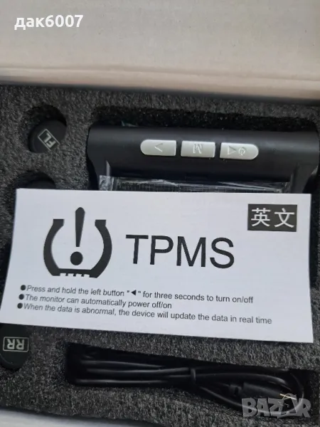 Система за мониторинг на налягането и температурата в гумите , снимка 1 - Аксесоари и консумативи - 47402536 Система за мониторинг на налягането и температурата в гумите , снимка 2 - Аксесоари и консумативи - 47402536 Система за мониторинг на налягането и температурата в гумите , снимка 3 - Аксесоари и консумативи - 47402536 Система за мониторинг на налягането и температурата в гумите , снимка 4 - Аксесоари и консумативи - 47402536 1/4